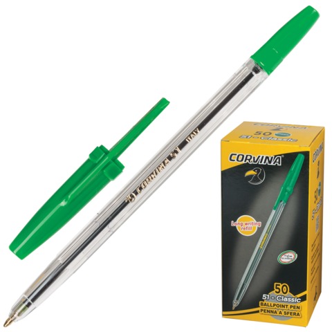 Ручка шариковая CORVINA (Италия) 51 "Classic", корпус прозрачный, узел 1 мм, линия 0,7 мм, зеленая, 40163/04