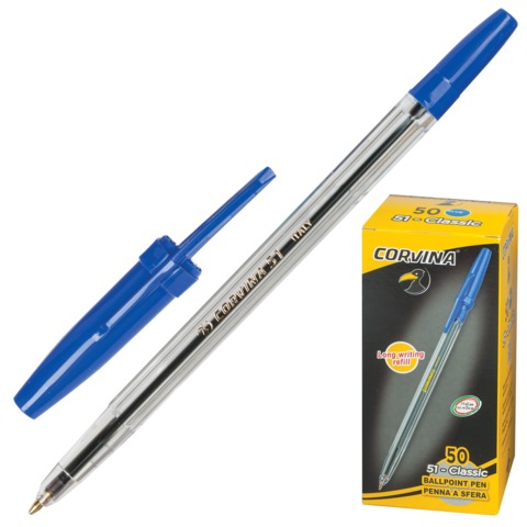 Ручка шариковая CORVINA (Италия) 51 "Classic", корпус прозрачный, узел 1 мм, линия 0,7 мм, синяя, 40163/02