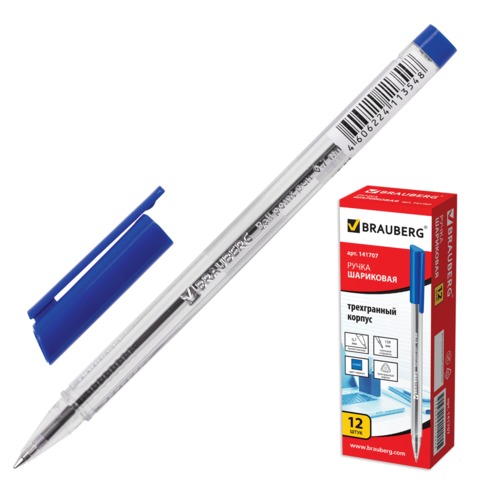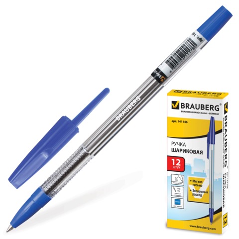 Ручка шариковая BRAUBERG "Note", корпус прозрачный, узел 0,7 мм, линия 0,35 мм, синяя, 141146