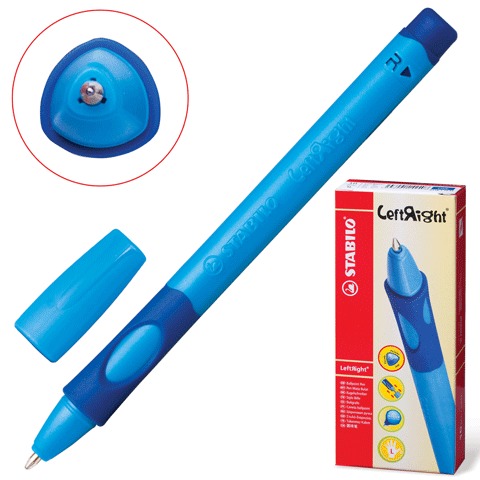Ручка шариковая STABILO "Left Right", для правшей, корпус синий, узел 0,8 мм, линия 0,4 мм, синяя, 6328/1-10-41