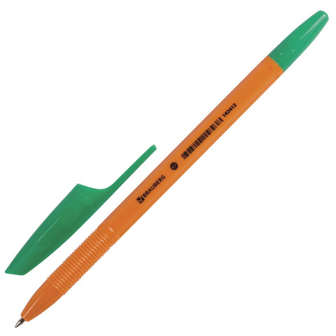 Ручка шариковая BRAUBERG "X-333 Orange", корпус оранжевый, узел 0,7 мм, линия 0,35 мм, зеленая, 142412