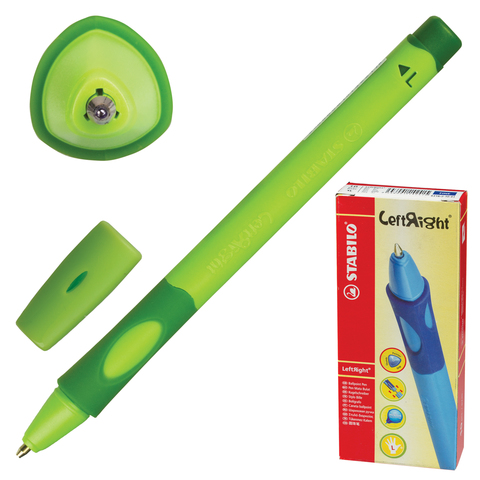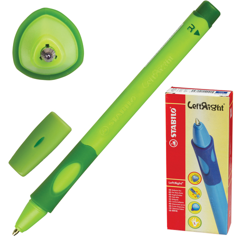 Ручка шариковая STABILO "Left Right", для левшей, корпус зеленый, узел 0,8 мм, линия 0,4 мм, синяя, 6318/2-10-41