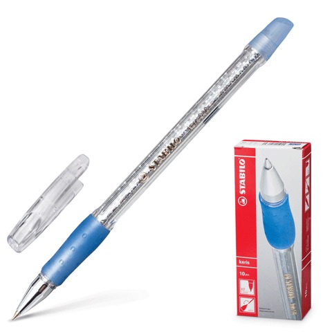 Ручка шариковая STABILO "Keris", корпус прозрачный с блестками, узел 0,5 мм, линия 0,3 мм, синяя, 538/41XF