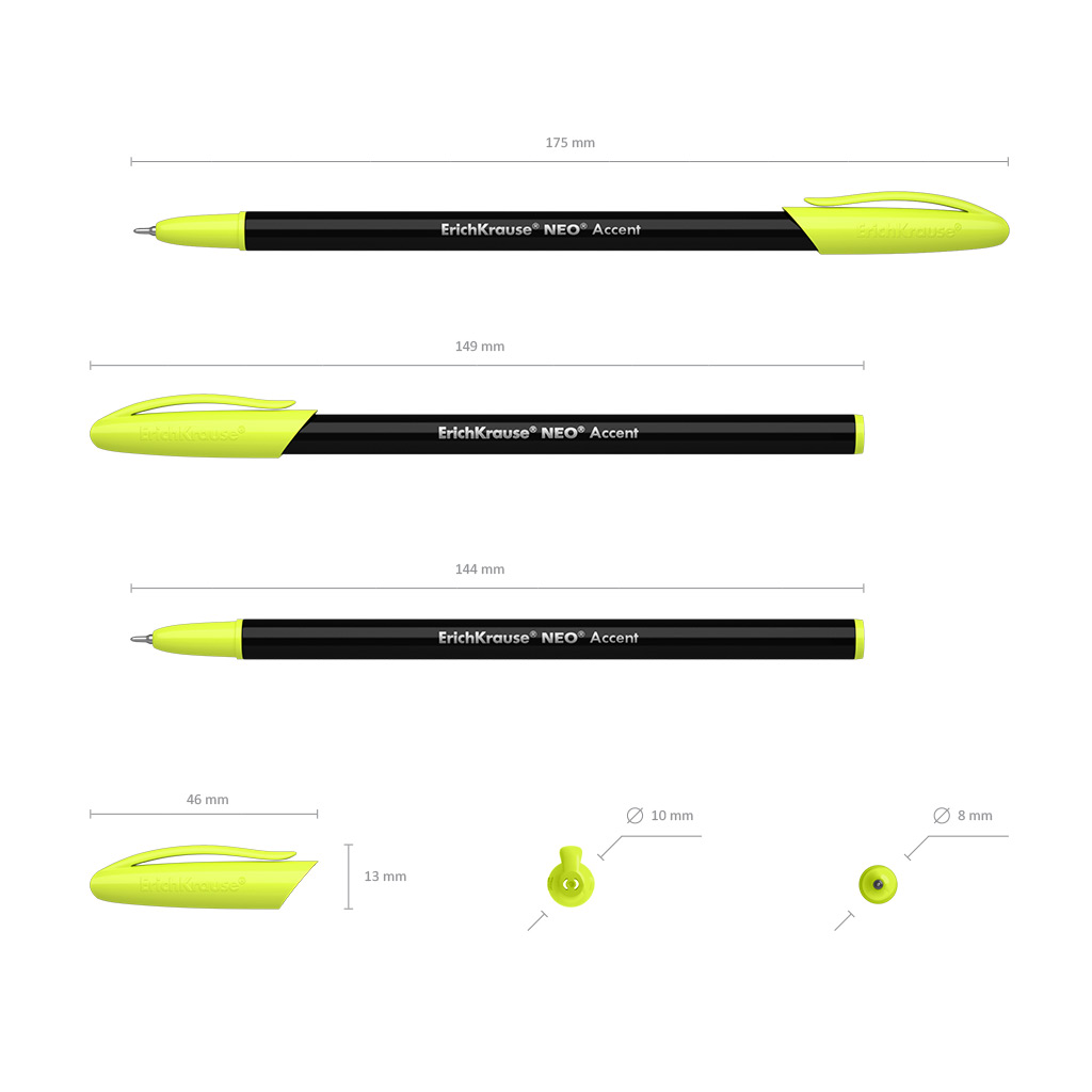 Классическая одноразовая шариковая ручка Stick с утонченным игольчатым типом пишущего узла Fine tip. Ручка имеет непрозрачный круглый корпус черного цвета и вентилируемый колпачок яркого неонового цвета. 5-канальный пишущий узел с диаметром шарика 0.7 мм в сочетании с чернилами пониженной вязкости обеспечивает точное и быстрое письмо без усилий. Длина непрерывной линии составляет 1000 м при толщине 0.26 мм, что является высоким показателем в своей категории. Модель Neo® Accent имеет элегантную форму и продолжает модельный ряд Neo в новой коллекции.
