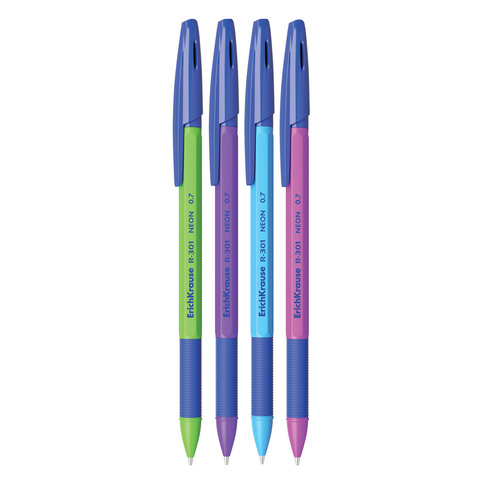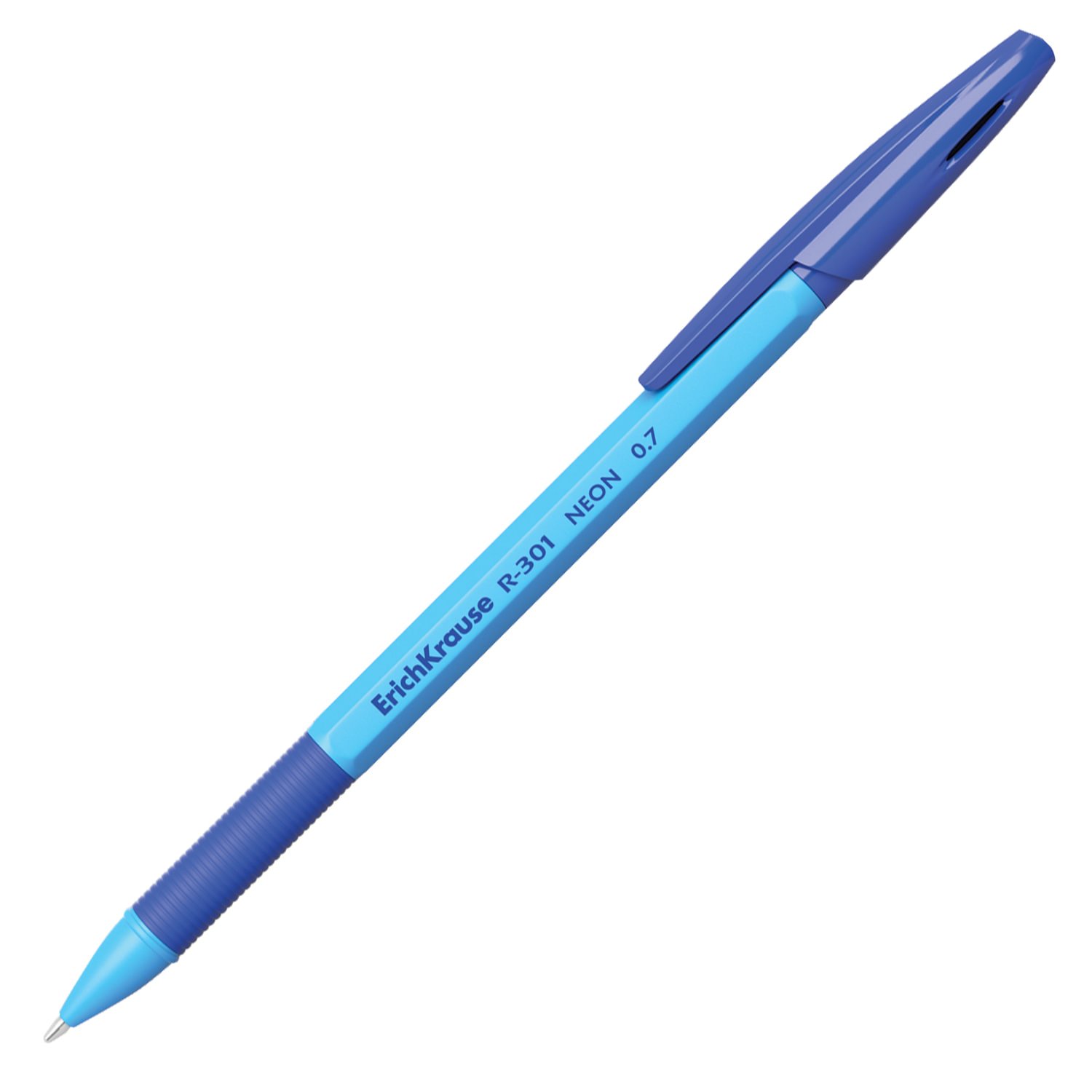 Ручка шариковая ERICH KRAUSE "R-301 Neon", корпус тонир. ассорти, 0,7мм, линия 0,35мм, синяя, 42751