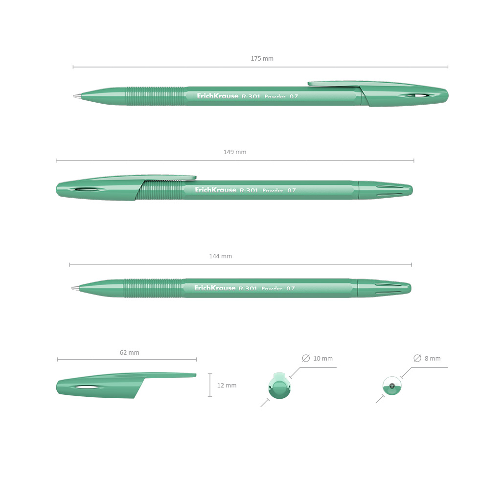 Классическая шариковая ручка Stick со стандартным типом пишущего узла и заменяемым стержнем. Ручка имеет непрозрачный шестигранный корпус нежных пудровых цветов с удобной профилированной грип-зоной и вентилируемый колпачок. 5-канальный пишущий узел с диаметром шарика 0.7 мм в сочетании с быстросохнущими чернилами обеспечивает мягкое и быстрое письмо. Длина непрерывной линии составляет 2000 м при толщине 0.35 мм, что является одним из лучших показателей в своей категории. Модель R-301 Powder Stick 0.7 имеет узнаваемую запатентованную форму и продолжает модельный ряд R-301 в новой коллекции.