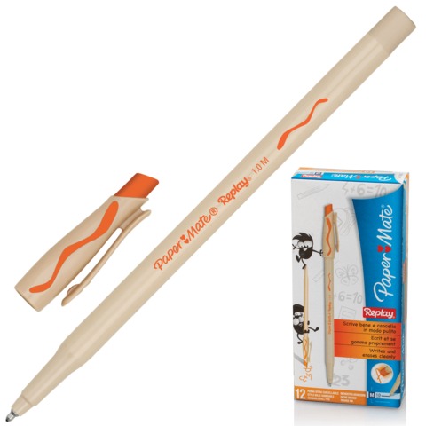 Ручка "Пиши-стирай" шариковая PAPER MATE "Replay", корпус бежевый, узел 1,2 мм, линия 1 мм, оранжевая, S0851461
