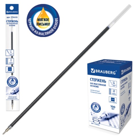 Стержень шариковый масляный BRAUBERG, 145 мм, игольчатый узел 0,7 мм, линия 0,35 мм, синий, 170235