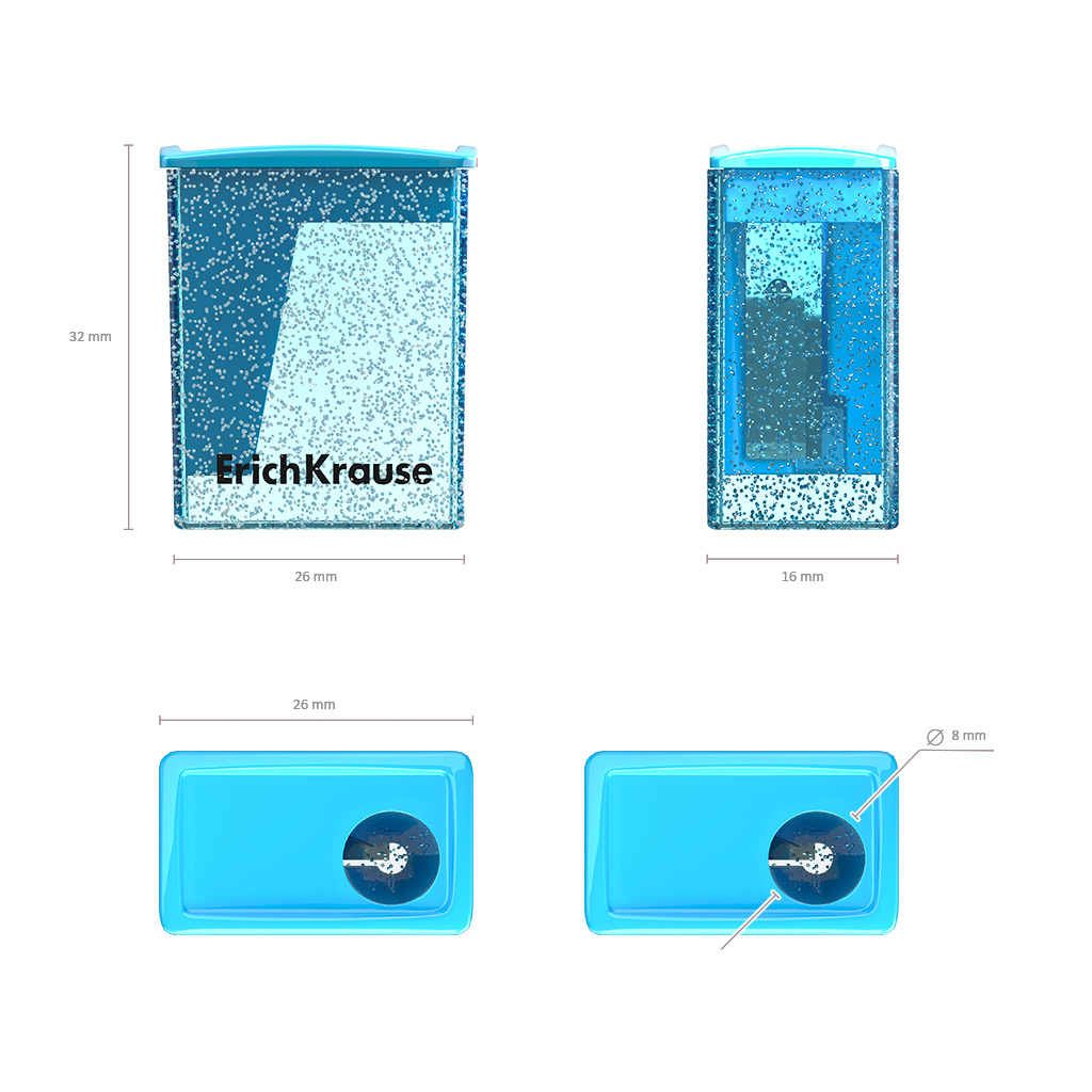 Пластиковая точилка с удобным прозрачным контейнером для сбора стружки. Имеет отверстие диаметром 8 мм для заточки стандартных чернографитных и цветных карандашей. Высококачественное никелированное брендированное лезвие из углеродистой стали гарантирует высокую производительность.
