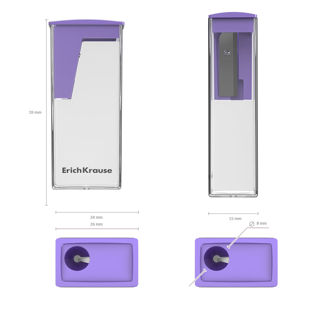 Пластиковая точилка с удобным прозрачным контейнером для сбора стружки. Имеет отверстие диаметром 8 мм для заточки стандартных чернографитных и цветных карандашей. Высококачественное никелированное брендированное лезвие из углеродистой стали гарантирует высокую производительность.