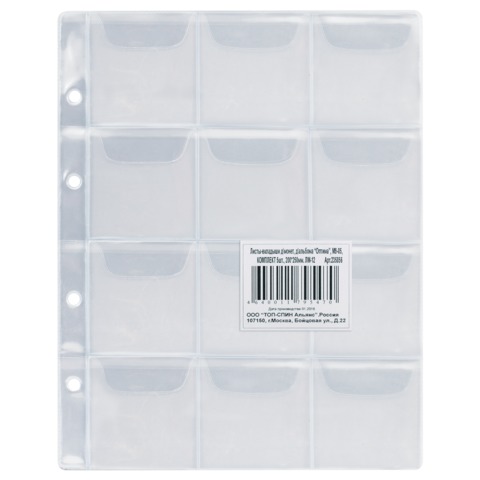 Листы-вкладыши для монет для альбома "Оптима" М9-05, комплект 5 шт., 200х250 мм, 12 карманов, ЛМ-12