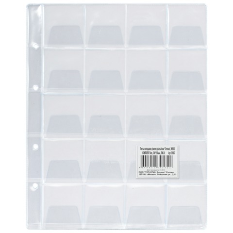 Листы-вкладыши для монет для альбома "Оптима" М9-05, комплект 5 шт., 200х250 мм, 20 карманов, ЛМ-20