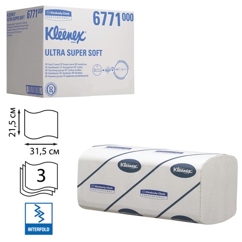 Полотенца бумажные 96 шт., KIMBERLY-CLARK Kleenex, комплект 30 шт., Ultra, 3-сл., белые, 31,5х21,5 см, Interfold, 601533-534, 6771