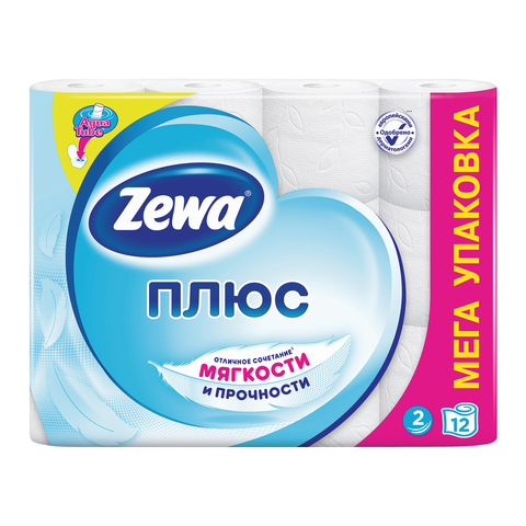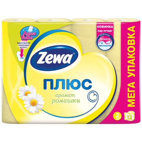 Бумага туалетная бытовая, спайка 12 шт., 2-х слойная (12х23 м), ZEWA Plus, аромат ромашки, 144089