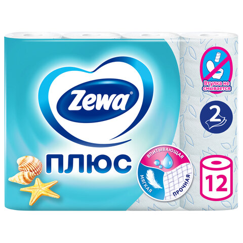Бумага туалетная 2-х слойная 12 рулонов (12х23 м), СВЕЖЕСТЬ ОКЕАНА, ZEWA Plus, 144136