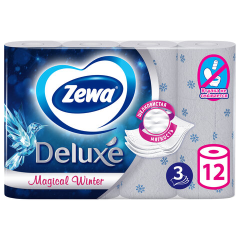 Бумага туалетная 3-х слойная 12 рулонов (12х18 м), белая, ZEWA Deluxe, 144029