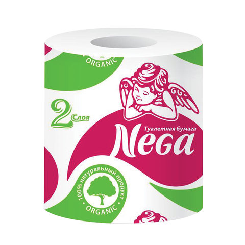 Бумага туалетная бытовая, 20 м, NEGA ("Нега"), 2-х слойная, на втулке, 100% целлюлоза