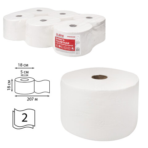 Бумага туалетная с центральной вытяжкой 207 м, LAIMA (Система T8) PREMIUM, 2-слойная, белая, КОМПЛЕКТ 6 рулонов, 112514