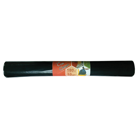 Мешки для мусора 180 л, комплект 10 шт., рулон, ПВД, 80х106 см, 30 мкм, ЭКОНОМ, черные, КБ "EcoClean", 2647