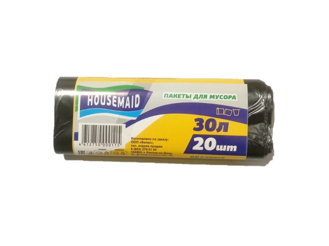Мешки для мусора 30 л, в рулоне 20 шт., ПНД, 6 мкм, 45х56 см (±5%), HOUSEMAID