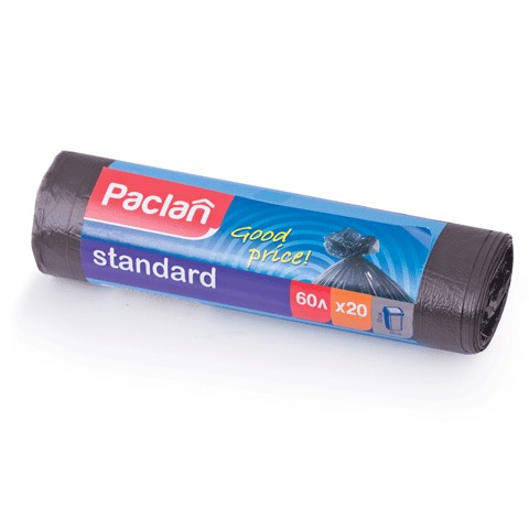 Мешки для мусора, 60 л, комплект 20 шт., рулон, ПНД, 60х72 см, 7 мкм, черные, PACLAN "Standard"
