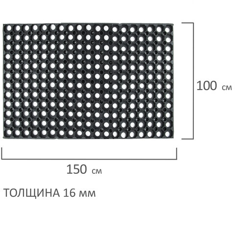 Коврик входной резиновый грязесборный ячеистый, 100х150 см, толщина 16 мм, LAIMA EXPERT, 607814