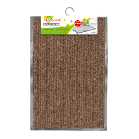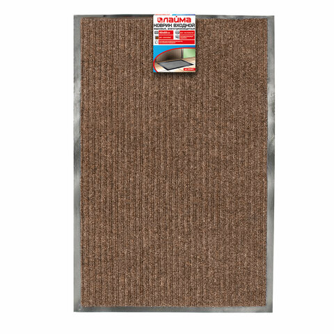 Коврик входной ворсовый влаго-грязезащитный ЛАЙМА, 40х60 см, ребристый, толщина 7 мм, коричневый, 602862