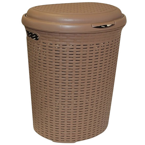 Корзина 50 л, с крышкой, для мусора/белья, овальная, пластик, 53х43х34 см, коричневая, "Ротанг", IDEA, М 2601