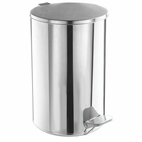 Ведро для мусора с педалью, УСИЛЕННОЕ, ТИТАН, 20 литров, кольцо под мешок, нержавеющая сталь, хром