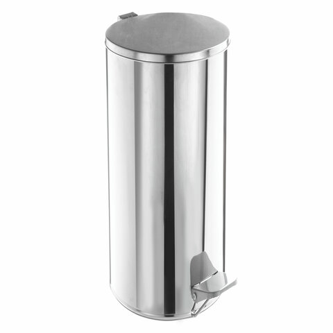 Ведро для мусора с педалью, УСИЛЕННОЕ, ТИТАН, 30 литров, кольцо под мешок, нержавеющая сталь, хром