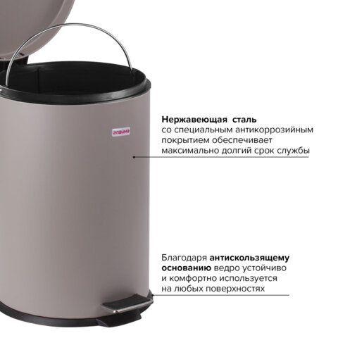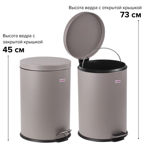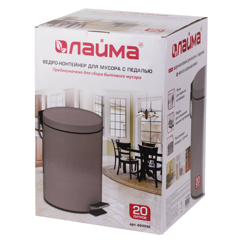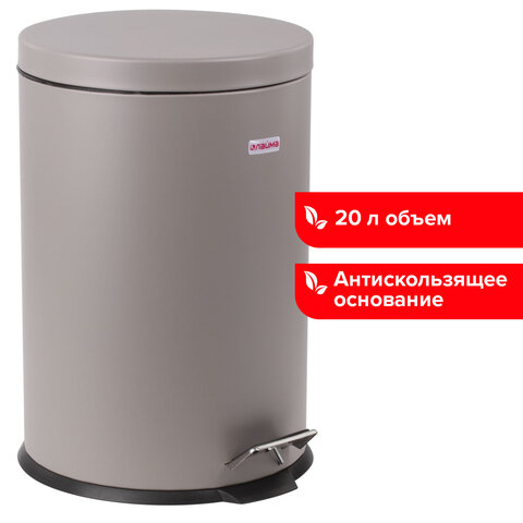 Ведро-контейнер для мусора (урна) с педалью LAIMA "Classic", 20 л, серое, матовое, металл, со съемным внутренним ведром, 604946