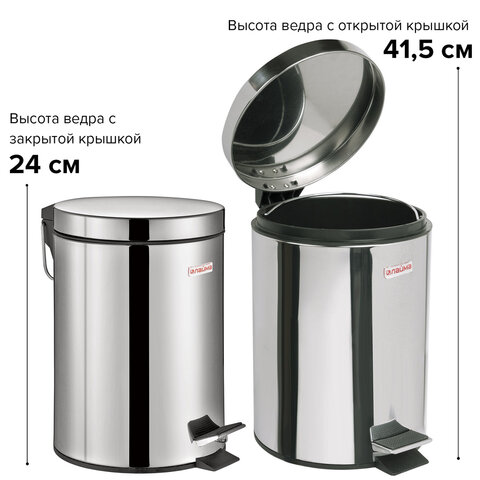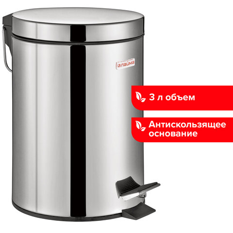 Ведро-контейнер для мусора (урна) с педалью LAIMA "Classic", 3 л, зеркальное, нержавеющая сталь, со съемным внутренним ведром, 604942