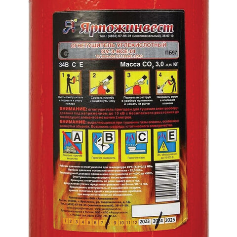 Огнетушитель углекислотный ОУ-3, ВСЕ закачной, в индивидуальном коробе, ЯРПОЖ, 46