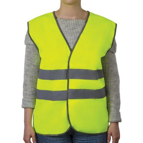 Сочетание неонового лимонного цвета и светоотражающих полос обеспечивает его заметность как днем, так и в темное время суток. Жилет с центральной застежкой на ленту-липучку надевается поверх другой одежды. Изделие соответствует второму классу защиты, изготовлено из 100% полиэстера плотностью 120 г/кв.м. Ширина светоотражающей ленты — 50 мм. Изделие полностью соответствует ГОСТ 12.4.281-2014 (Система стандартов безопасности труда. Одежда специальная повышенной видимости).