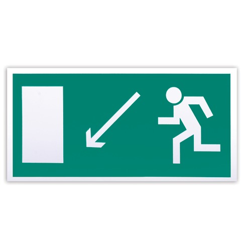 Знак эвакуационный "Направление к эвакуационному выходу налево вниз" изготовлен в соответствии с ГОСТ Р 12.4.026-2001.
