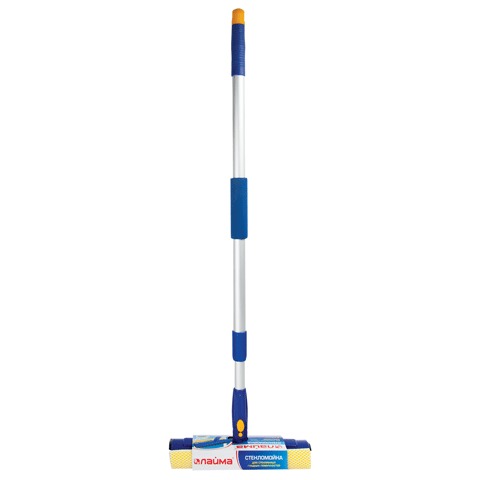 Стекломойка ЛАЙМА вращающаяся, телескопическая ручка, рабочая часть 25 см (стяжка, губка, ручка), для дома и офиса, 601494