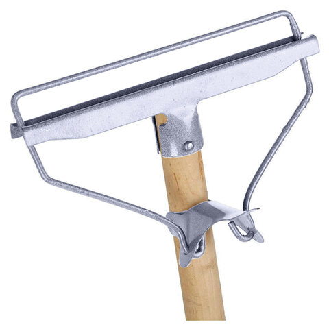 Швабра для пола с металлическим зажимом служит для влажной уборки твердых поверхностей. Длина деревянной ручки 120 см, ширина рабочей части 20 см. Удобство использования с любыми тряпками. Металлический зажим обеспечивает надежную фиксацию тряпки.