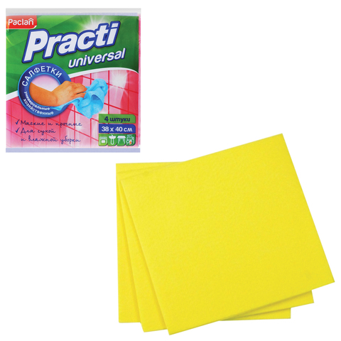 Салфетки универсальные, комплект 4 шт., 38х40 см, PACLAN "Practi", нетканое полотно, 410020