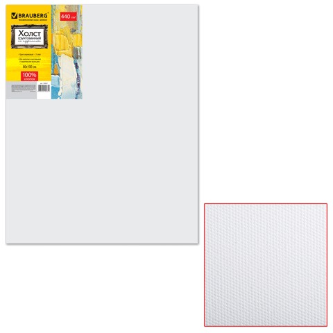 Холст грунтованный на подрамнике BRAUBERG, 80х100 см, 100% хлопок, крупное зерно, 190647