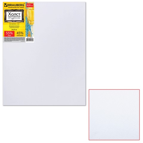 Холст грунтованный на подрамнике BRAUBERG, 50х70 см, 45% хлопок, 55% лен, среднее зерно, 190637