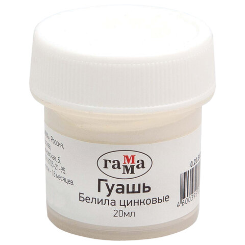 Гуашь 1 шт. ГАММА 20 мл, белила цинковые, 0.20.В020.0011