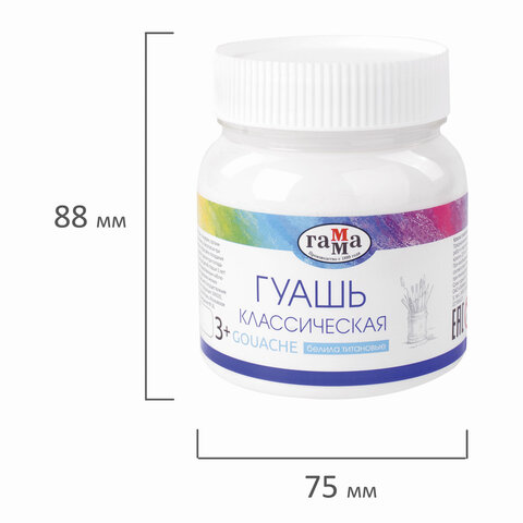 Гуашь 1 шт. ГАММА классическая 220 мл, белила титановые, 221066221