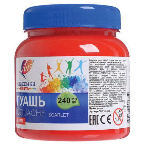 Гуашь художественная 1 шт. ЛУЧ "Классика", 240 мл, алая, 30С 1814-08