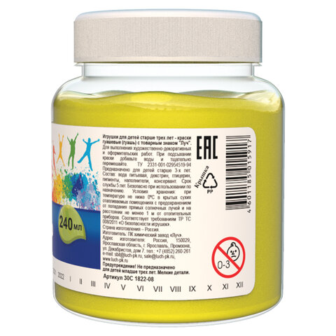 Гуашь художественная 1 шт. ЛУЧ "Классика", 240 мл, лимонная, 30С 1822-08