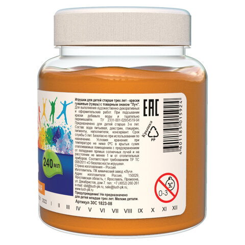 Гуашь художественная 1 шт. ЛУЧ "Классика", 240 мл, оранжевая светлая, 30С 1823-08