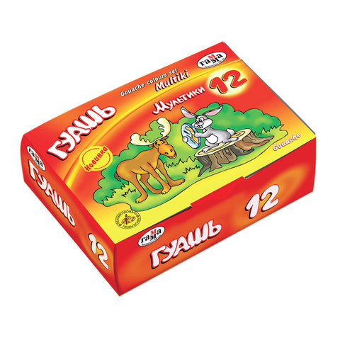 Гуашь ГАММА "Мультики", 12 цветов по 40 мл, картонная упаковка, 221032Н