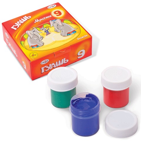 Гуашь ГАММА "Мультики", 9 цветов по 20 мл, без кисти, картонная упаковка, 221031