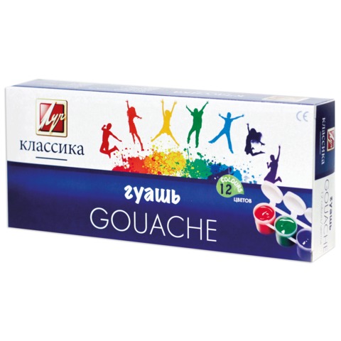 Гуашь ЛУЧ "Классика", 12 цветов по 20 мл, блок-тара, без кисти, картонная упаковка, 21С 1376-08