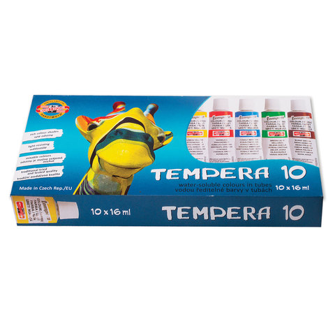 Краски темперные KOH-I-NOOR "Жираф", 10 цветов по 16 мл, в алюмииневых тубах, без кисти, 01625S1001KS