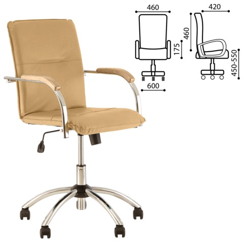 Кресло оператора "Samba GTP", деревянные накладки, хром, кожзам, песочный